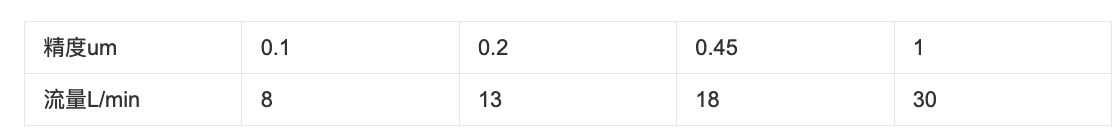過(guò)濾精度:0.1、0.2、0.45、1(um)